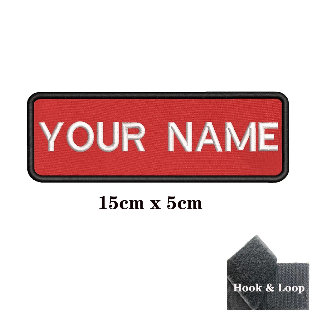 Crafted with a vibrant red background, these patches command attention. The sleek, rounded-edge design framed by a sophisticated black border adds a touch of elegance, ensuring your custom text stands out. Opt for our default striking white text or customize the text color to your preference for a truly personalized piece.